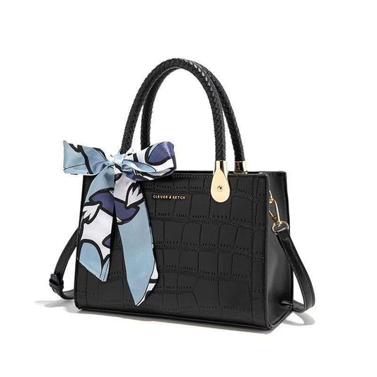 Elegant Croc-Embossed Handbag with Silk Bow Accent
