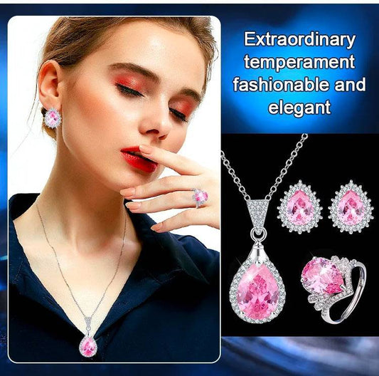 50%-OffđĨ Water drop shaped pink zirconium jewelry three-piece set-Give free jewelry box