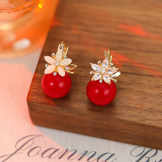 Niche design double-sided zircon flower cat's eye stone earrings