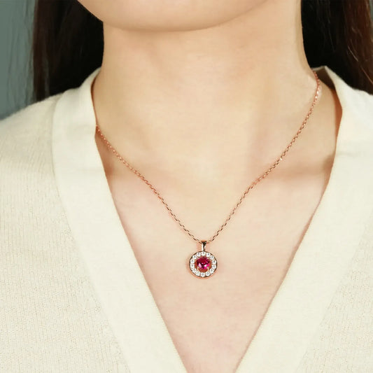 Fortune Glow Ruby Necklace – 1.1ct Lab-Grown Round Ruby, Adjustable Chain