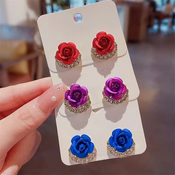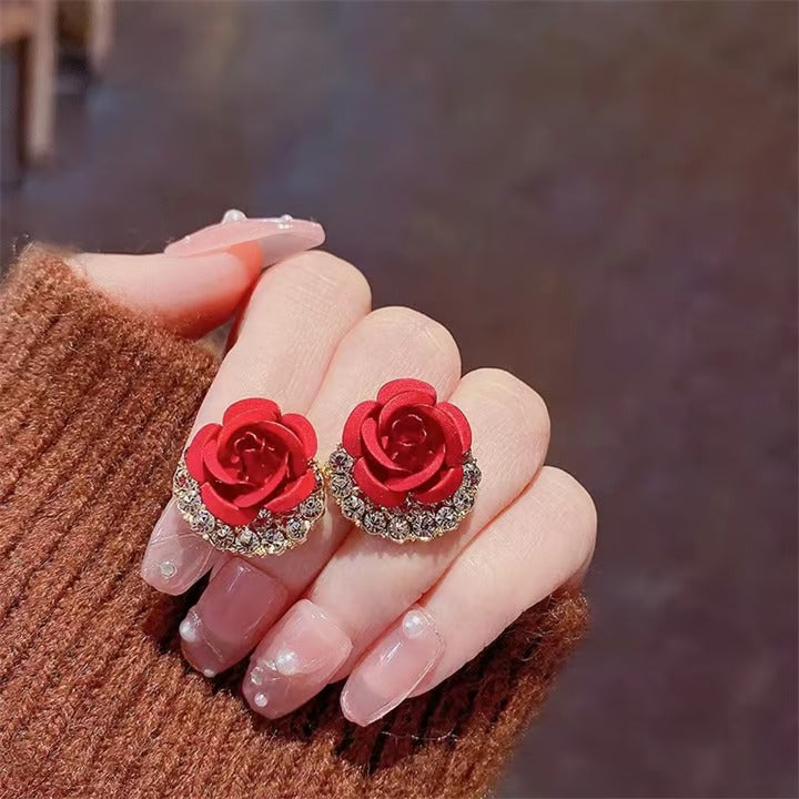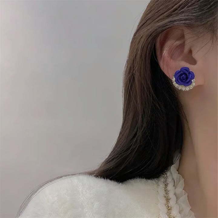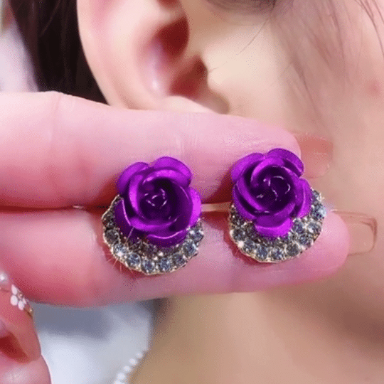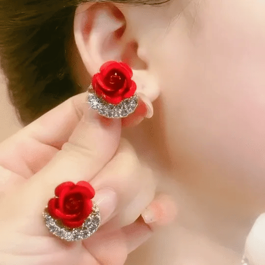 🌹Diamond Rose Earrings Floral Blooming 3D Carved