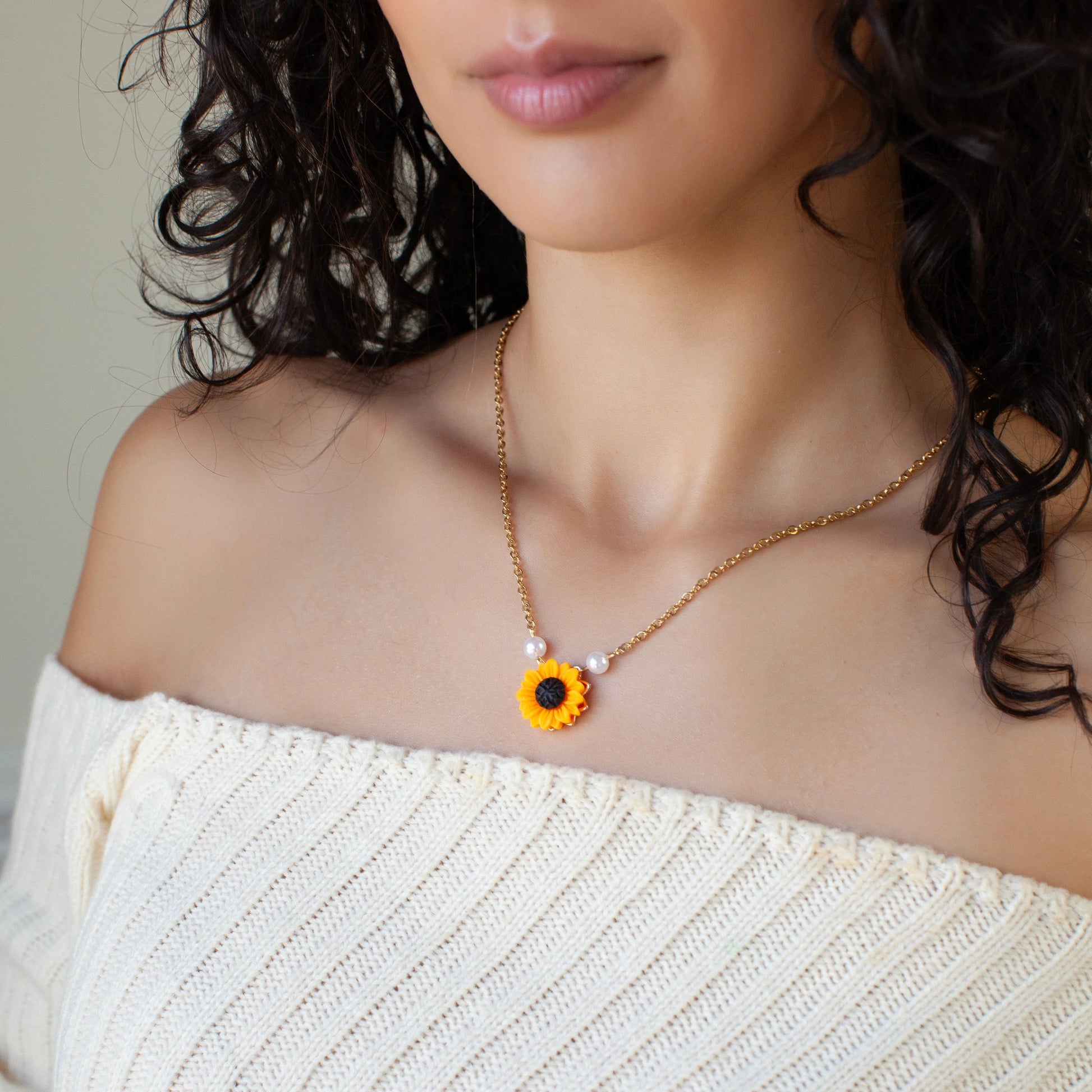 This delicate handmade necklace reminds you of the warm summer days. The realistic look of the sunflower is stunning!